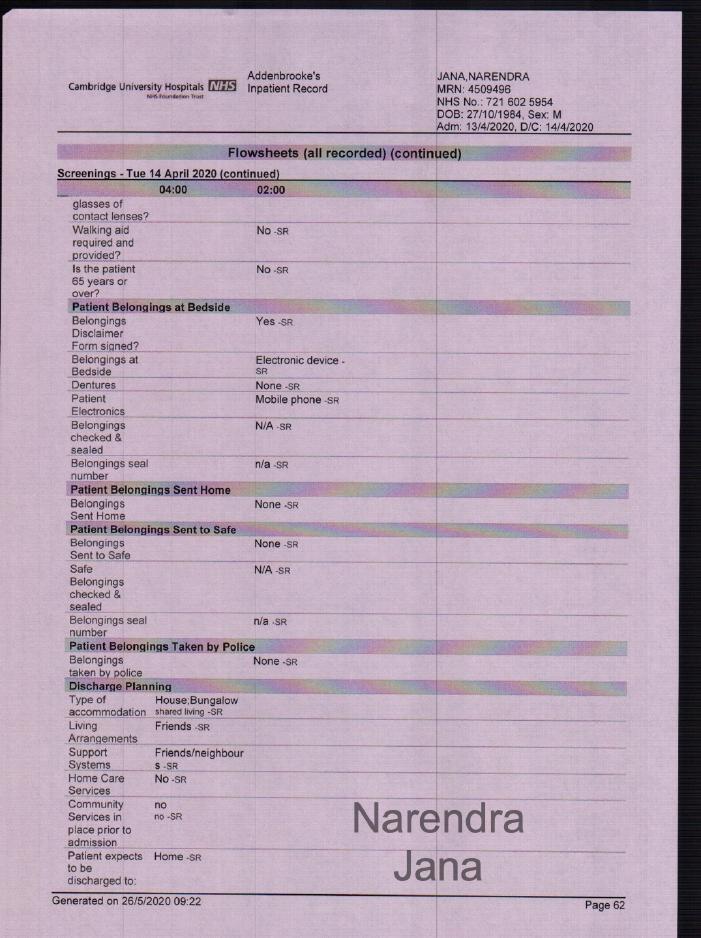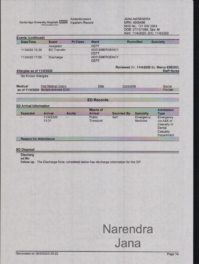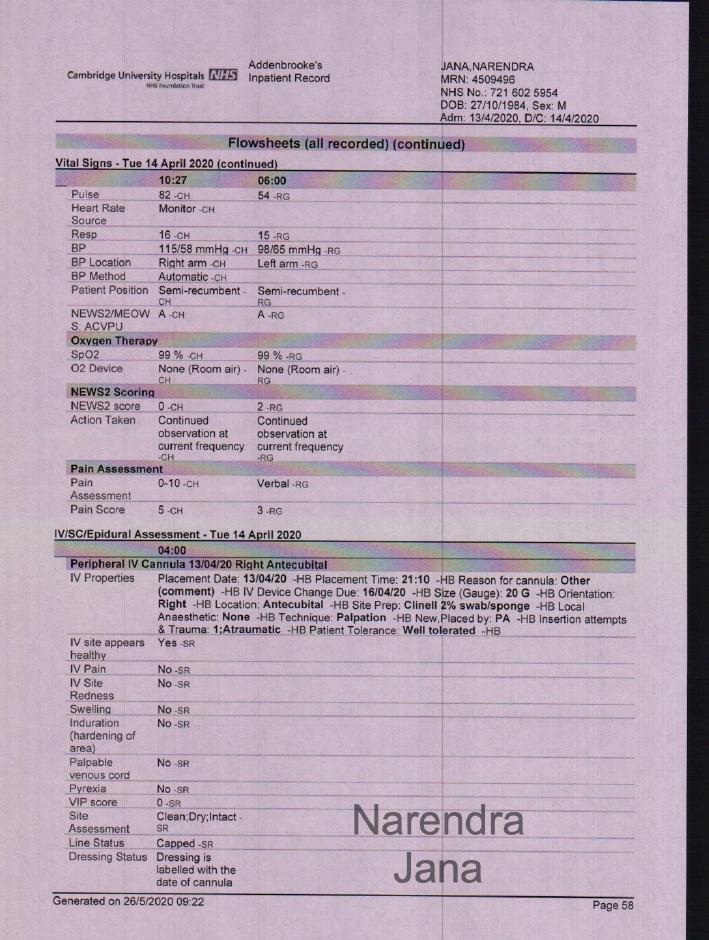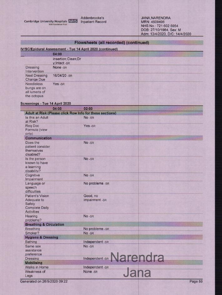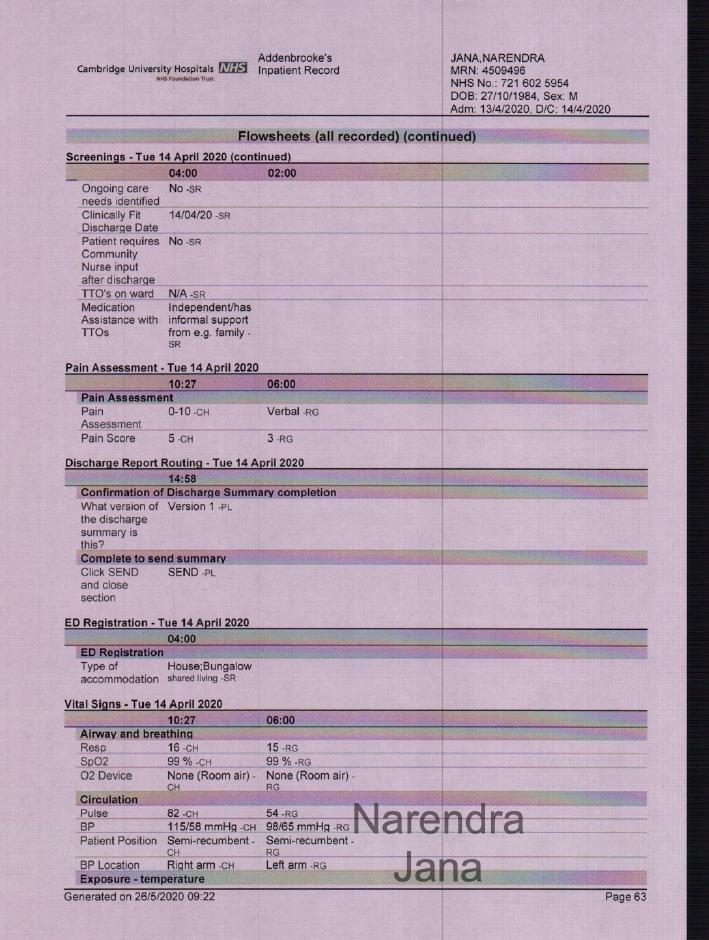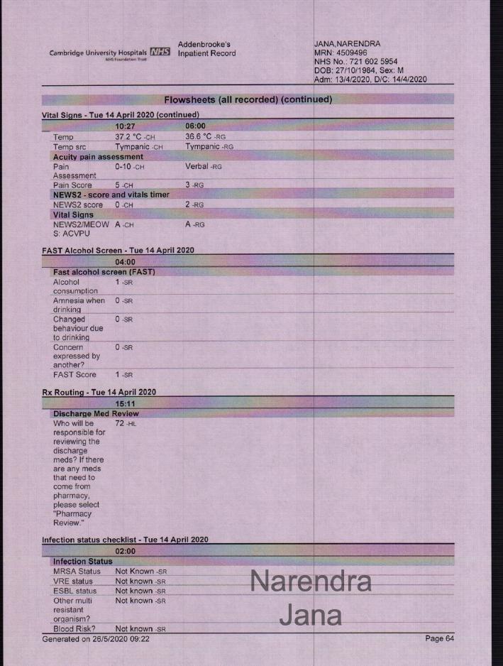 Addenbrookes Full Medical Records for April 11th to April 14th: