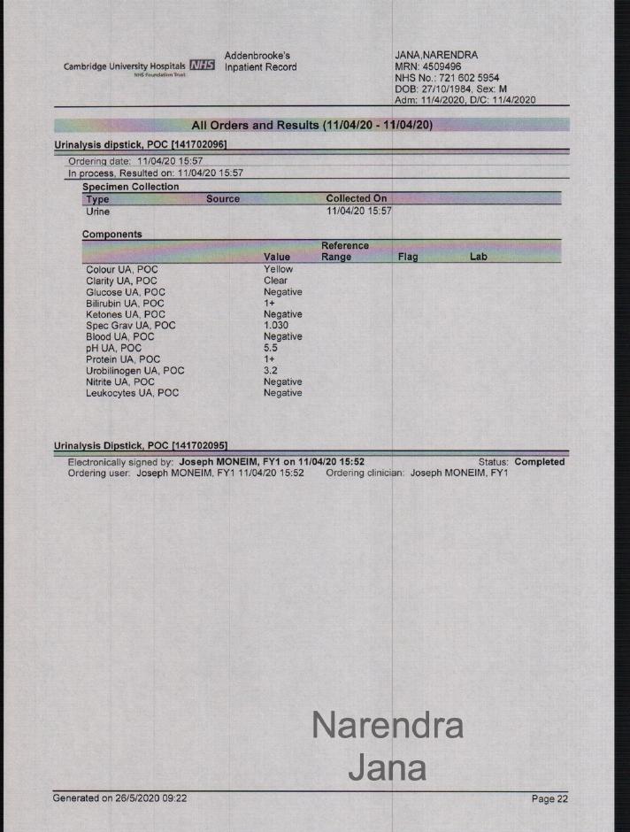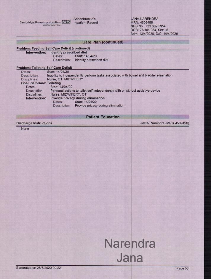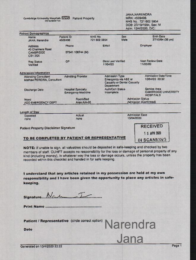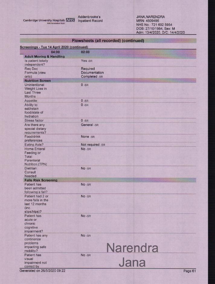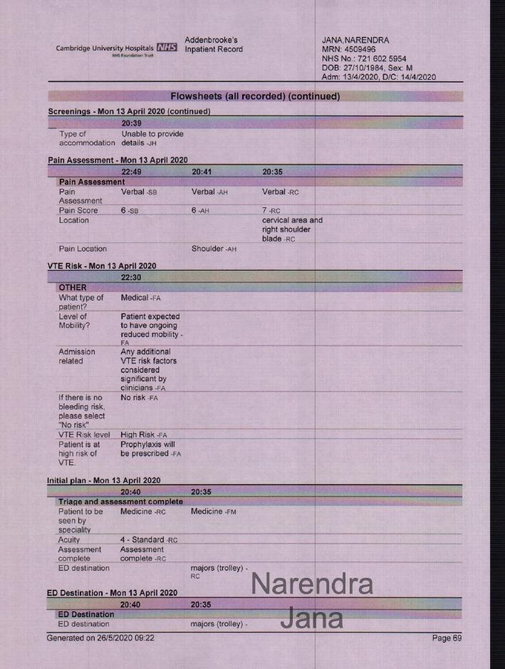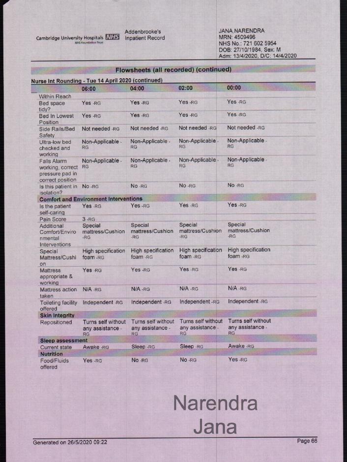 Addenbrookes Full Medical Records for April 11th to April 14th: