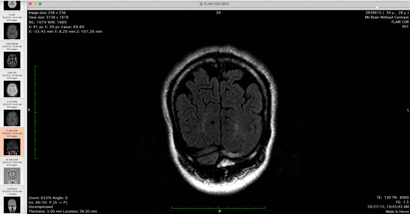 And she said you readily have T2 intensities in both your brain and spine, it's a fairly direct reading because unless you are completely blind you can pretty much easily see it.